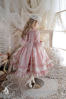 18〜19世紀の絵画や資料を参考に、18世紀フランスの宮廷ドレス「ローブ・ア・ラ・フランセーズ」の要素を盛り込んだ